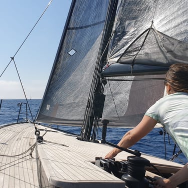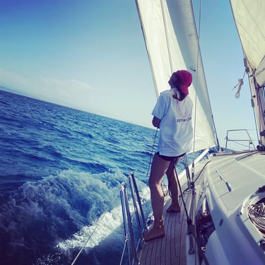 Fondatrice de 42°Nord, Karine navigue sur les différentes mers du globe et vous propose ses services pour du convoyage comme de l'accompagnement maritime. Skipper professionnelle et monitrice de voile, elle s’occupe de toute la partie navigation et entretien des bateaux.